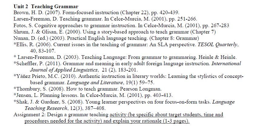 2. 课程第二章“Teaching Grammar” 阅读目录: