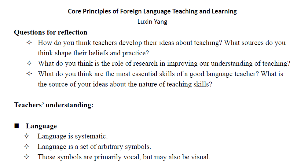 3. “Core Principles of Foreign Language Teaching and Learning” 课程讲义(节选):
