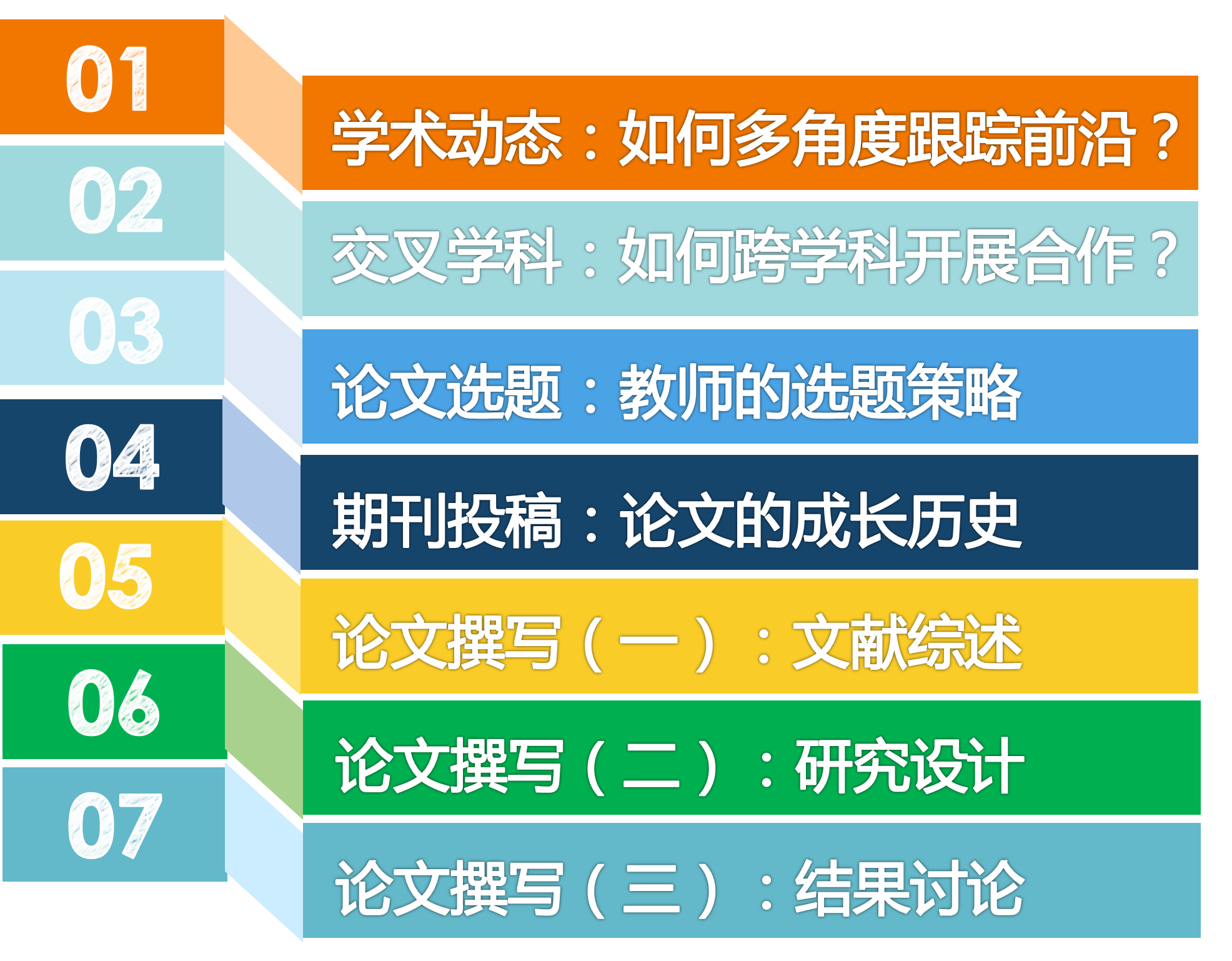 3)发表:“论文撰写与期刊发表”帮助您攻克论文撰写中的三大难点:文献综述、研究设计、结果讨论。